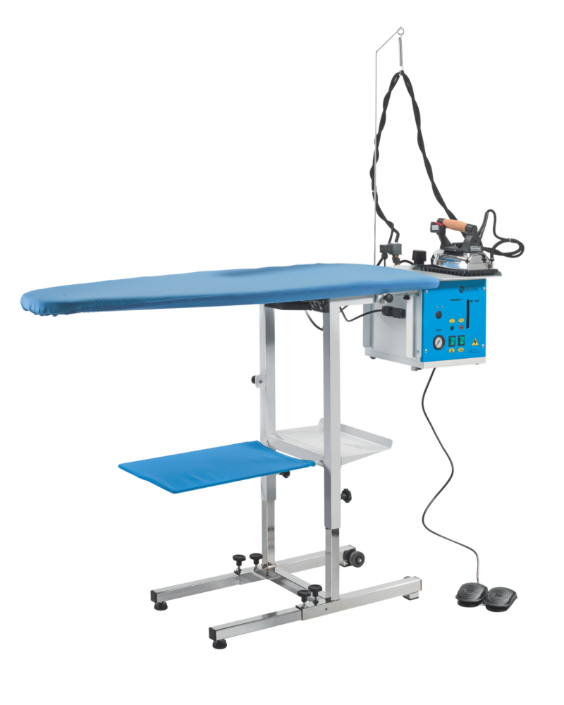 Tabla de planchar planchar plegable, aspirante, soplante, calentada, con altura ajustable, con caldera de acero inoxidable de 4,5 L y plancha.
